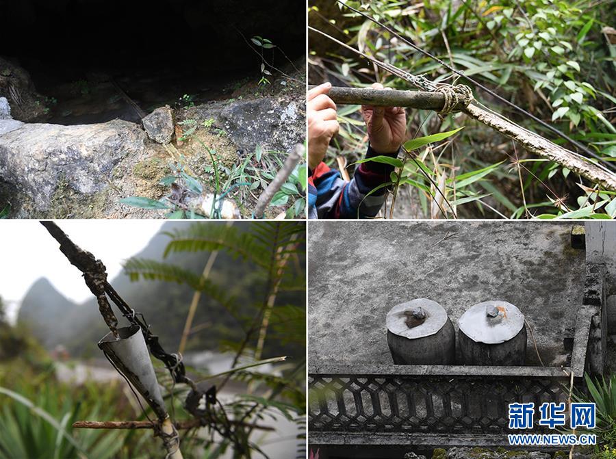這張拼版圖片顯示廣西都安瑤族自治縣澄江鎮(zhèn)自成村加倫屯村民黃景飛獨(dú)創(chuàng)的“鐵線引水”法(2018年3月16日攝)。左上圖為竹枧將山泉水從山洞引出;右上圖為竹枧將山泉水引到鐵線上;左下圖為一個(gè)特制的漏斗將水接入膠管里;右下圖為膠管將山泉水送到水缸里。廣西有近一半貧困人口生活在石漠化地區(qū),涉及數(shù)十個(gè)縣區(qū)。這里也是廣西飲水保障程度最低的地區(qū),解決貧困人口飲水問題是廣西脫貧攻堅(jiān)戰(zhàn)“硬仗中的硬仗”。“十三五”以來,廣西加快實(shí)施農(nóng)村飲水安全鞏固提升工程。因地制宜,采取新建、擴(kuò)建及管網(wǎng)延伸等多種措施,補(bǔ)齊貧困地區(qū)水利薄弱短板,進(jìn)一步提升石漠化地區(qū)群眾飲水安全保障水平,助推脫貧攻堅(jiān)。新華社記者陸波岸攝