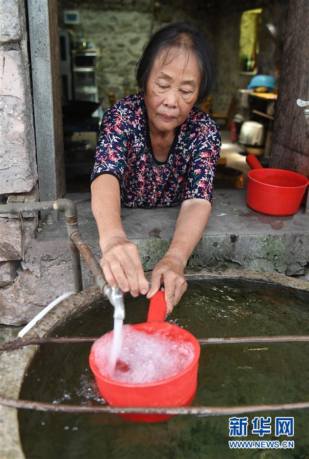 在廣西都安瑤族自治縣龍灣鄉(xiāng)琴棋村琴嶺屯,村民在接從水柜里引來(lái)的自來(lái)水(2019年7月23日攝)。廣西有近一半貧困人口生活在石漠化地區(qū),涉及數(shù)十個(gè)縣區(qū)。這里也是廣西飲水保障程度最低的地區(qū),解決貧困人口飲水問(wèn)題是廣西脫貧攻堅(jiān)戰(zhàn)“硬仗中的硬仗”?!笆濉币詠?lái),廣西加快實(shí)施農(nóng)村飲水安全鞏固提升工程。因地制宜,采取新建、擴(kuò)建及管網(wǎng)延伸等多種措施,補(bǔ)齊貧困地區(qū)水利薄弱短板,進(jìn)一步提升石漠化地區(qū)群眾飲水安全保障水平,助推脫貧攻堅(jiān)。新華社記者陸波岸攝