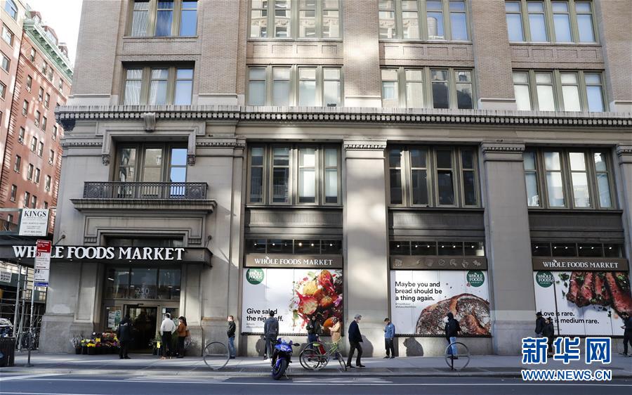 3月21日,在美國紐約,人們排隊時保持距離,準備進入一家超市購物。美國紐約州、伊利諾伊州、康涅狄格州20日發(fā)布針對本州居民的“居家令”,以遏制新冠病毒傳播。這些“居家令”涵蓋紐約、洛杉磯、芝加哥等大城市,影響數(shù)千萬人。白宮20日發(fā)表聲明說,總統(tǒng)特朗普已宣布紐約州出現(xiàn)“重大災難”,命令聯(lián)邦政府支援該州抗擊新冠肺炎疫情。新華社記者王迎攝