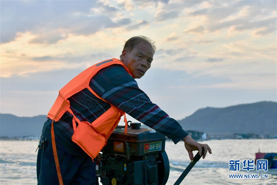 3月26日,福建漳州東山縣岐下村村民陳炎松駕駛著小舢板由魚骨沙洲景點(diǎn)返回碼頭。新華社記者姜克紅攝