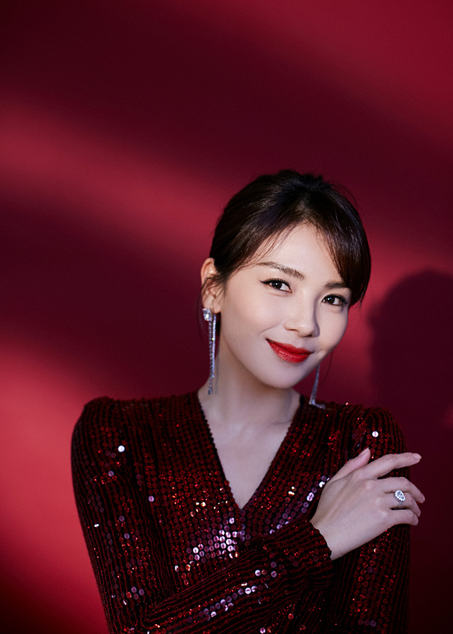 發(fā)型:盤發(fā),斜劉海,黑發(fā)