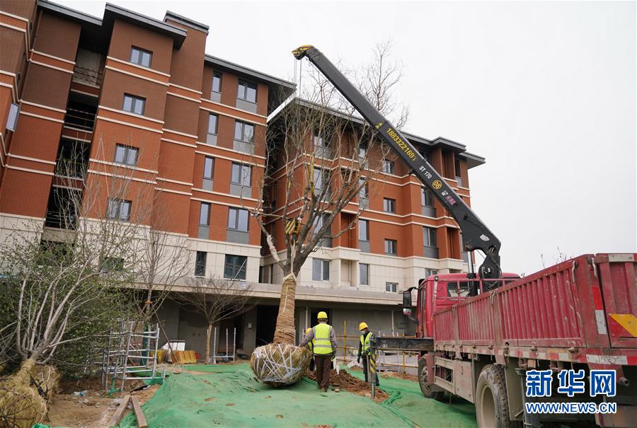 工人在雄安高質(zhì)量建設(shè)實(shí)驗(yàn)區(qū)(生活)項(xiàng)目建設(shè)現(xiàn)場(chǎng)吊裝樹(shù)木(3月26日攝)。新華社記者楊世堯攝