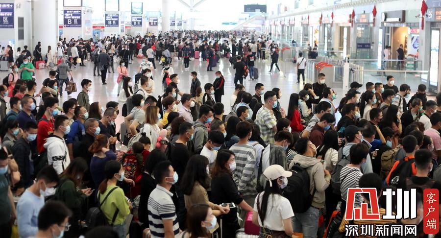 2020年3月28日,廣東深圳,周末的深圳北站客流量增大。