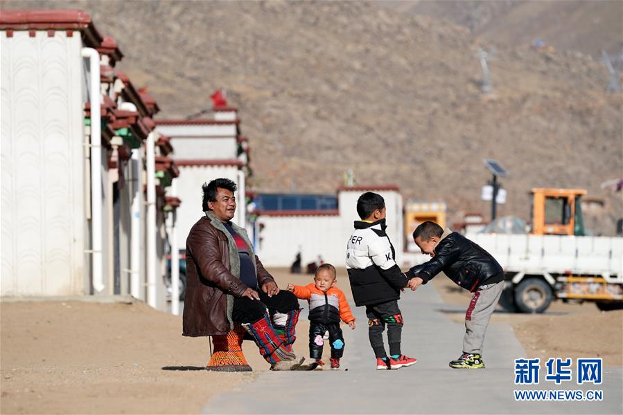 在拉薩市堆龍德慶區(qū)古榮鄉(xiāng)榮瑪高海拔生態(tài)搬遷點(diǎn),美瓊(左一)和孩子們?cè)诩议T口玩耍(4月1日攝)。美瓊一家在搬遷點(diǎn)分到一套120平米的房子。美瓊還和朋友合伙在搬遷點(diǎn)的扶貧綜合門面房租了一間店面,開了一家銷售日用品的小商店。新華社記者 詹彥 攝
