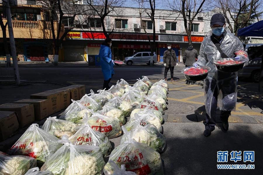 2月20日,湖北省武漢市下沉花橋社區(qū)的干部在搬運(yùn)居民訂購的草莓。 新華社記者 沈伯韓 攝