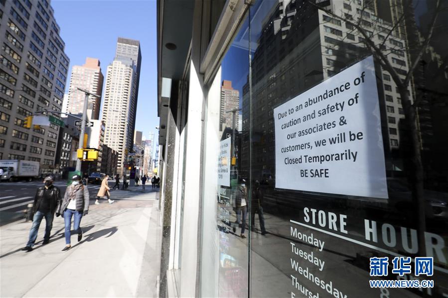 3月21日,在美國紐約時報廣場,一家服裝店貼出閉店告示。美國紐約州、伊利諾伊州、康涅狄格州20日發(fā)布針對本州居民的“居家令”,以遏制新冠病毒傳播。這些“居家令”涵蓋紐約、洛杉磯、芝加哥等大城市,影響數(shù)千萬人。白宮20日發(fā)表聲明說,總統(tǒng)特朗普已宣布紐約州出現(xiàn)“重大災難”,命令聯(lián)邦政府支援該州抗擊新冠肺炎疫情。新華社記者王迎攝