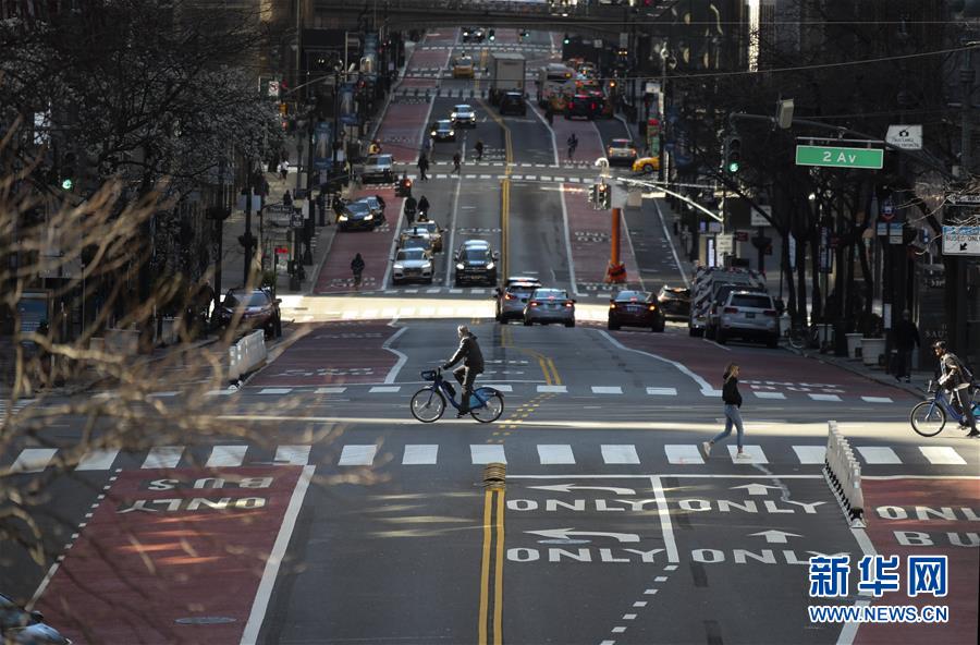3月19日,美國紐約曼哈頓街頭車輛稀少。新華社記者王迎攝