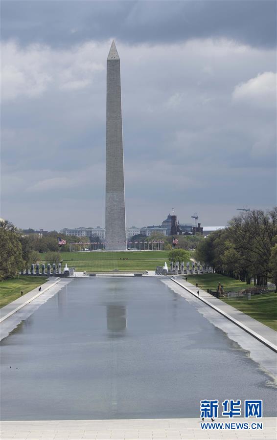 4月8日,在美國首都華盛頓,華盛頓紀念碑周圍游人稀少。新華社記者劉杰攝