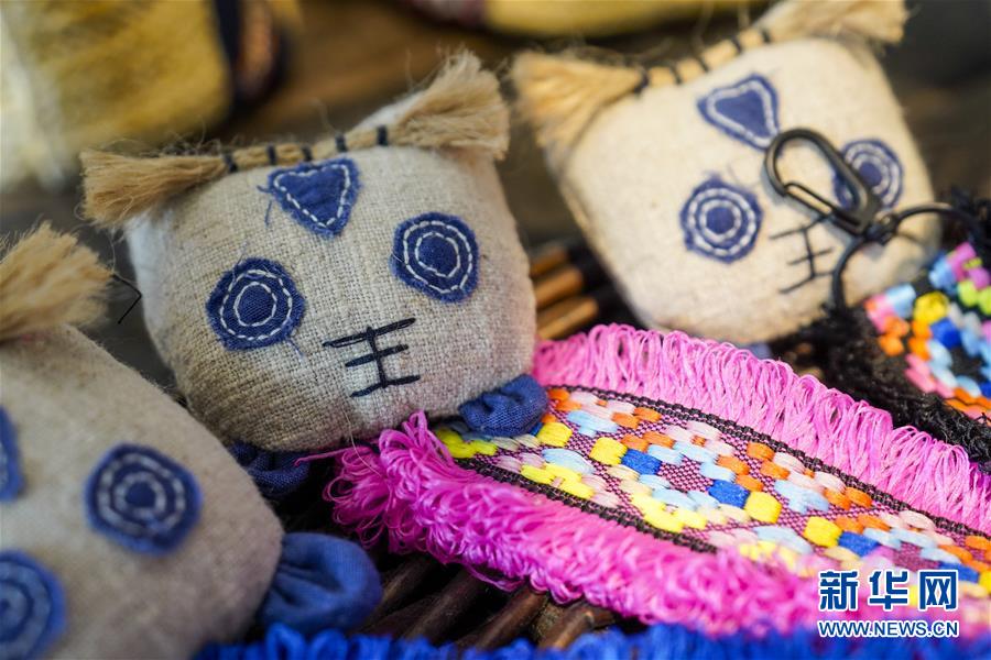 這是重慶石柱中益鄉(xiāng)巾幗扶貧工坊內(nèi)展示的當?shù)貗D女制作的土家族風情鑰匙扣(4月8日攝)。近年來,重慶市石柱土家族自治縣中益鄉(xiāng)在重慶市婦聯(lián)的幫助下,以當?shù)胤沁z傳統(tǒng)技藝作為結合點,把扶貧與扶志、扶智相結合,通過引進外來文創(chuàng)企業(yè)對留守婦女、貧困及殘疾人群進行刺繡培訓,設立巾幗扶貧工坊等多種形式,幫助當?shù)卮迕駥崿F(xiàn)就業(yè)增收。據(jù)介紹,巾幗扶貧工坊運行以來,為當?shù)仃懤m(xù)開發(fā)出土家族布老虎、手提袋、餐墊繡邊、創(chuàng)意相框等一系列文創(chuàng)產(chǎn)品,幫助參加巾幗扶貧工坊的留守婦女和貧困村民實現(xiàn)月均增收近千元。新華社記者劉潺攝