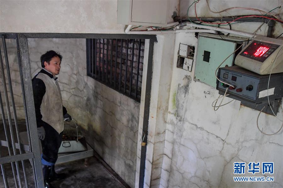 4月14日,中國大熊貓保護研究中心核桃坪基地飼養(yǎng)員周季秋在打掃完大熊貓“喜妹”的圈舍后,將大熊貓前一晚排泄的糞便稱重并記錄。新華社記者張超群攝