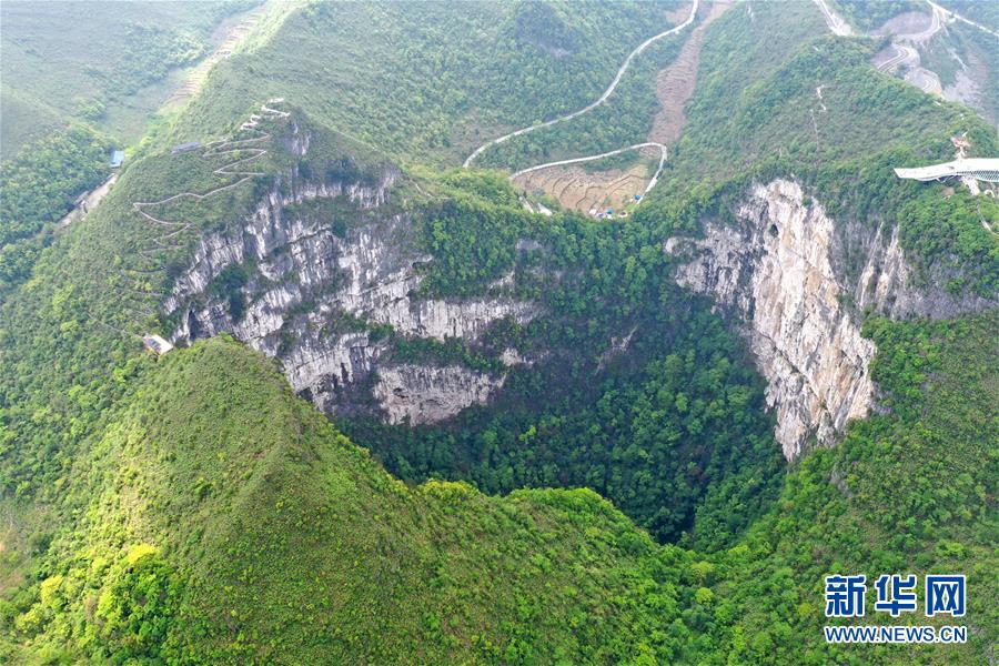 這是4月19日拍攝的中國(guó)樂業(yè)—鳳山世界地質(zhì)公園內(nèi)的大石圍天坑(無人機(jī)照片)。中國(guó)樂業(yè)—鳳山世界地質(zhì)公園位于廣西西北部,公園內(nèi)地質(zhì)遺跡包括天坑群、天窗群、鐘乳石等,具有重要的科研價(jià)值和美學(xué)觀賞價(jià)值。