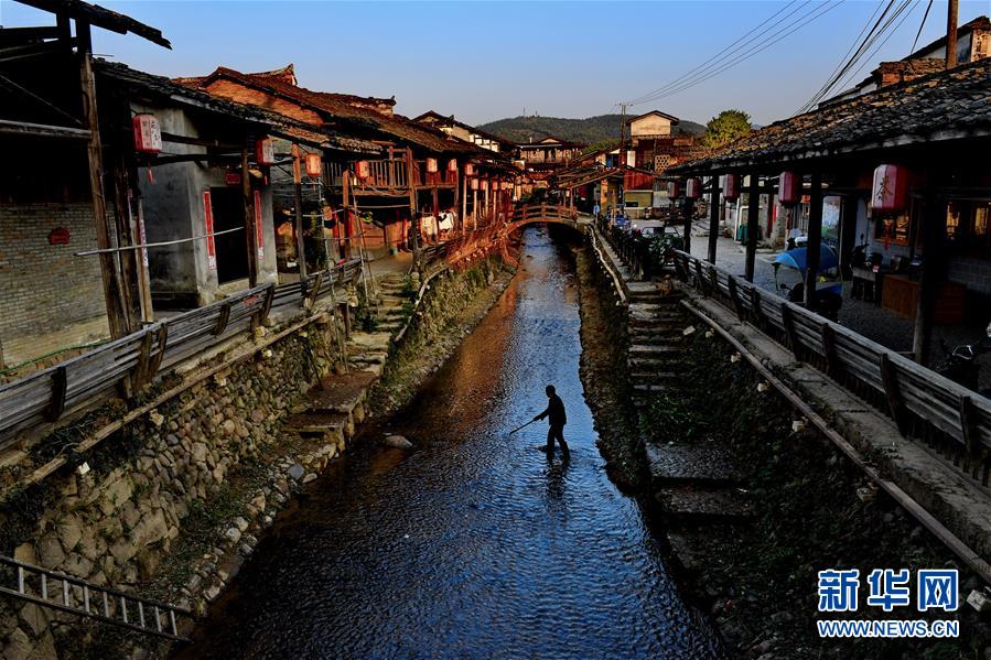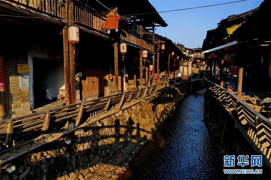 游客在武夷山下梅村游覽(11月5日攝)。福建省武夷山市下梅村是“中國歷史文化名村”,這里歷史悠久,人文薈萃,至今保存著70余幢明清時代的古民居。人工運河穿村而過,古民居、涼亭、古街等構(gòu)成了別具特色的江南水鄉(xiāng)風景。新華社記者馬平攝