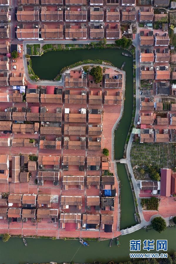 11月14日空中俯瞰閩南水上古村落——埭美村(無人機拍攝)。新華社記者姜克紅攝
