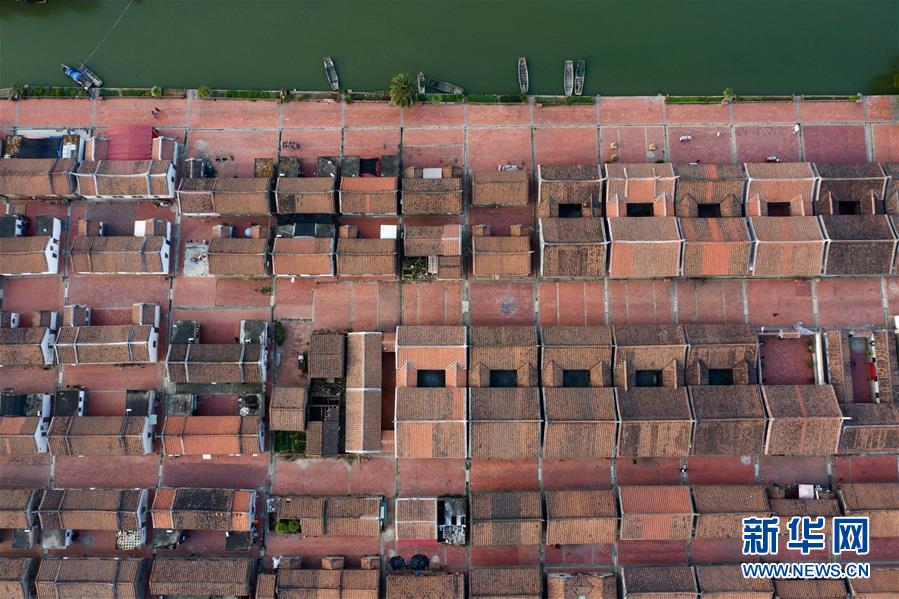 11月14日空中俯瞰閩南水上古村落——埭美村(無人機(jī)拍攝)。新華社記者姜克紅攝
