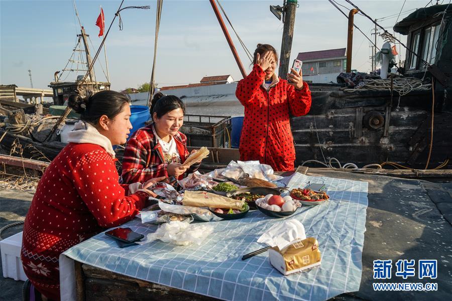 4月22日,做海鮮批發(fā)生意的徐紅紅(右)在拍攝短視頻前化妝。她在一個(gè)月前開始做網(wǎng)絡(luò)直播銷售,目前已經(jīng)吸引了1000多個(gè)粉絲。新華社記者楊磊攝