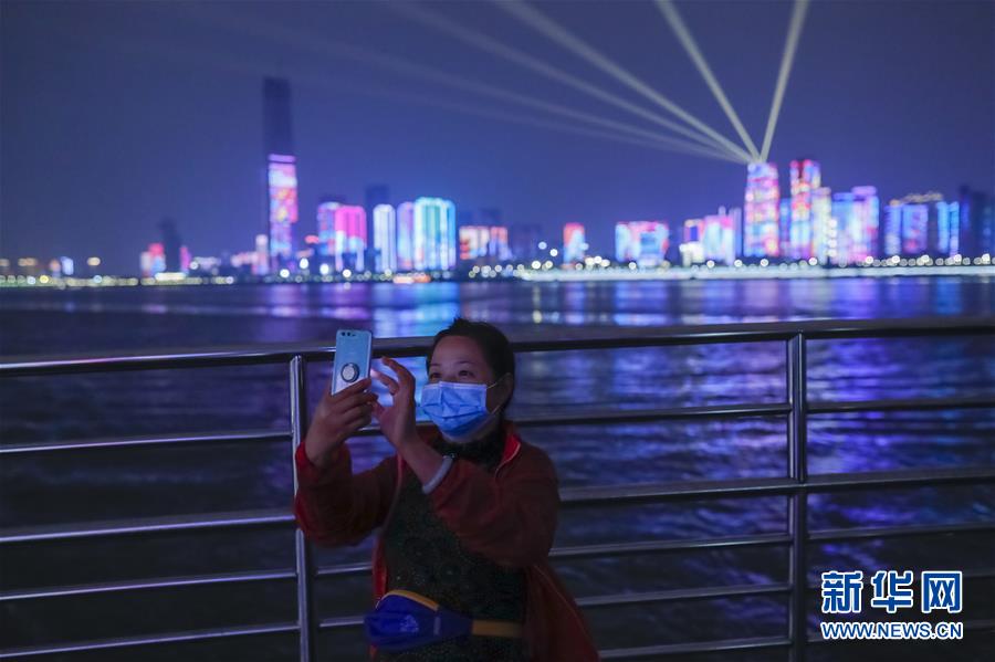 4月22日,市民乘坐武漢長江客運輪渡出行時,在船上拍攝夜景。為建立與經(jīng)濟社會發(fā)展和疫情防控需要相適應(yīng)的運輸服務(wù)保障機制,保障市民出行需求,從4月22日起,武漢城市公共交通有序恢復(fù)全線網(wǎng)運營。新華社記者沈伯韓攝