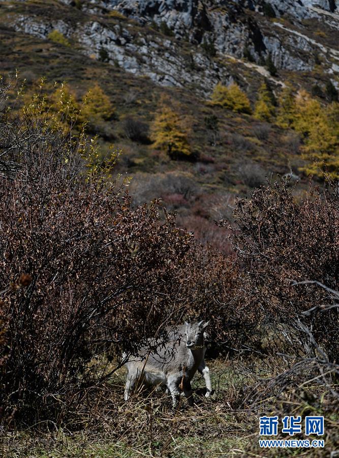 這是在四川亞丁國家級自然保護區(qū)拍攝的野生巖羊(2019年10月20日攝)。新華社記者唐文豪攝