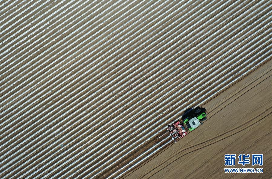 4月25日,灤南縣東黃坨鎮(zhèn)新戶村農(nóng)民使用拖拉機(jī)給準(zhǔn)備栽植煙薯秧苗的土地開溝覆膜(無人機(jī)照片)。近年來,河北省灤南縣利用當(dāng)?shù)赝寥篮蜌夂蛱攸c(diǎn),引導(dǎo)農(nóng)民因地制宜發(fā)展煙薯種植,取得良好效果。目前該縣煙薯種植面積達(dá)3萬多畝,每畝年收入達(dá)5000多元。新華社記者楊世堯攝