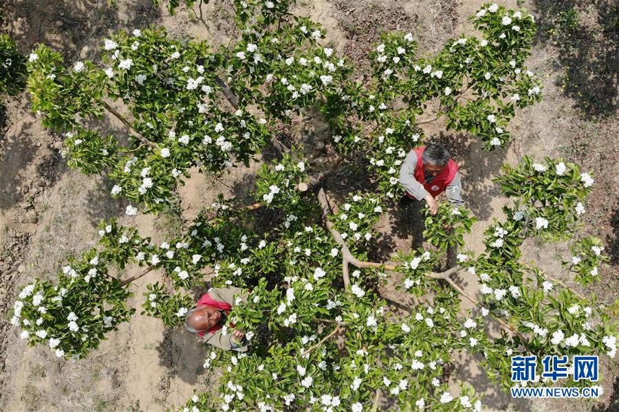 4月26日,農民在河北省清河縣馬屯紅果種植專業(yè)合作社的山楂種植區(qū)內為果樹疏花(無人機照片)。4月下旬以來,河北省清河縣2萬余畝山楂樹競相開花,成為一道亮麗的風景線。清河縣年產(chǎn)山楂7.5萬余噸,山楂種植已成為當?shù)剞r民的重要增收途徑。新華社記者牟宇攝