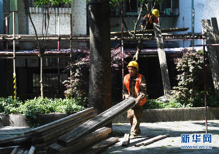 4月26日,工人在渝中區(qū)大溪溝街道雙鋼路社區(qū)改造提升項(xiàng)目施工現(xiàn)場(chǎng)作業(yè)。近段時(shí)間以來(lái),重慶市渝中區(qū)大溪溝街道加快推進(jìn)轄區(qū)內(nèi)老舊小區(qū)改造提升工作,從環(huán)境衛(wèi)生、房屋管理及養(yǎng)護(hù)、安防及車(chē)輛管理、綠化管理等方面進(jìn)行綜合改造提升,以增強(qiáng)社區(qū)居民的幸福感、獲得感、安全感。新華社記者王全超攝
