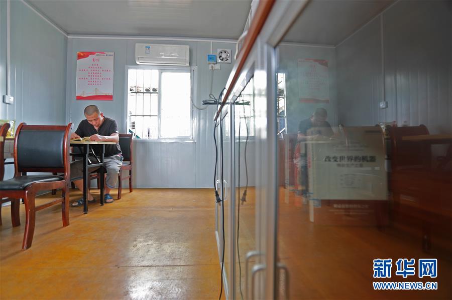 4月25日,一名工人在圖書室內(nèi)閱讀。新華社記者盧燁攝