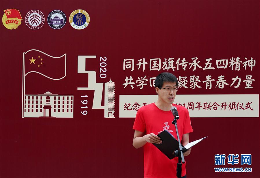 5月4日,北京大學(xué)青年代表在升旗儀式上發(fā)言。 當(dāng)日,北京大學(xué)通過(guò)與武漢大學(xué)、西藏大學(xué)、北京大學(xué)研究生支教團(tuán)聯(lián)合舉辦紀(jì)念五四運(yùn)動(dòng)升旗儀式以及北京大學(xué)2020年五四青春詩(shī)會(huì)等活動(dòng),傳承五四精神,紀(jì)念五四青年節(jié)。 新華社記者 張晨霖 攝