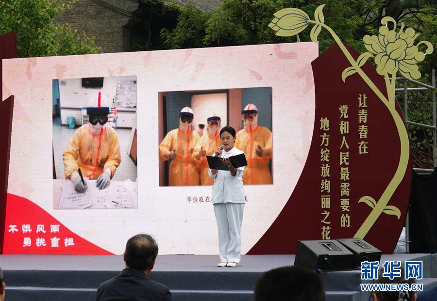 5月4日,北京大學(xué)援鄂醫(yī)療隊“90后”黨員代表在北大五四青春詩會朗誦。 當(dāng)日,北京大學(xué)通過與武漢大學(xué)、西藏大學(xué)、北京大學(xué)研究生支教團(tuán)聯(lián)合舉辦紀(jì)念五四運動升旗儀式以及北京大學(xué)2020年五四青春詩會等活動,傳承五四精神,紀(jì)念五四青年節(jié)。 新華社記者 張晨霖 攝