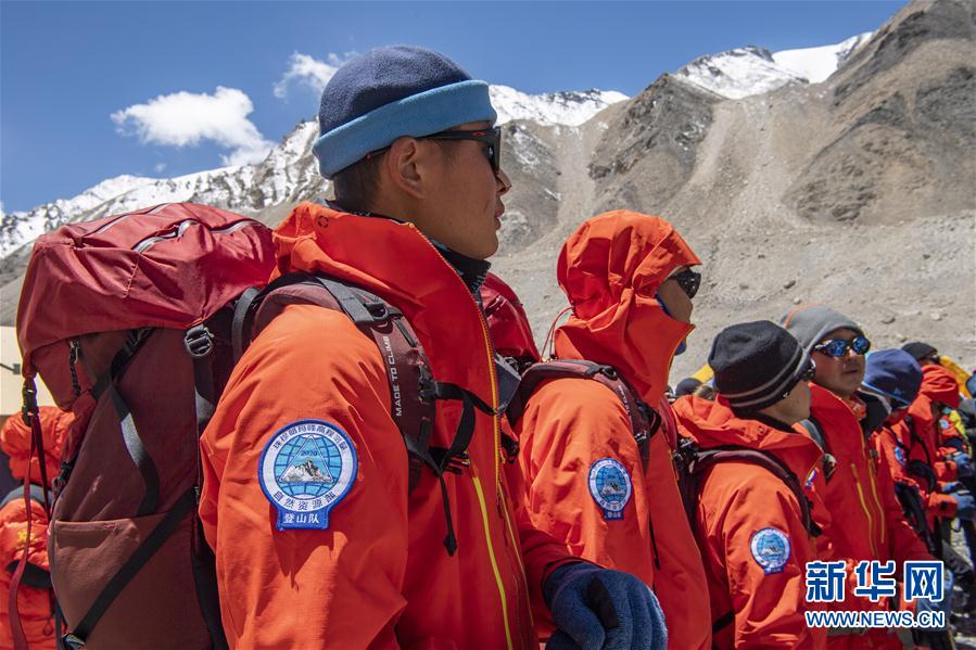 5月6日,登山隊員們在珠峰大本營舉行出發(fā)儀式。新華社記者孫非攝