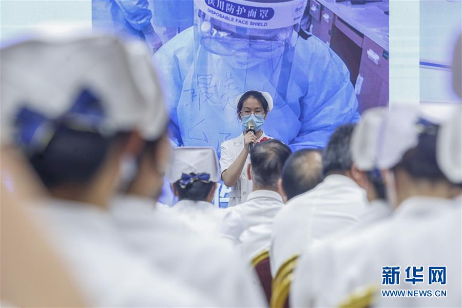 5月11日,援鄂醫(yī)療隊隊員代表在活動上分享戰(zhàn)“疫”故事。在國際護士節(jié)到來之際,北京大學人民醫(yī)院11日舉辦慶祝護士節(jié)暨優(yōu)秀集體和個人表彰活動,并邀請援鄂醫(yī)療隊護士代表分享戰(zhàn)“疫”故事。我國今年護士節(jié)的主題為“致敬護士隊伍,攜手戰(zhàn)勝疫情”。新華社記者張玉薇攝