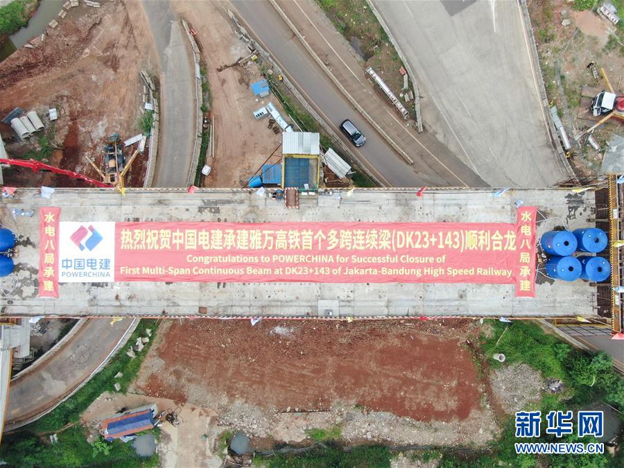 這是5月10日拍攝的印度尼西亞雅萬高鐵2號特大橋施工現(xiàn)場。(無人機(jī)拍攝)當(dāng)日,印尼雅萬高鐵首個多跨連續(xù)剛構(gòu)完成合龍,標(biāo)志著雅萬高鐵2號特大橋施工進(jìn)入攻堅(jiān)建設(shè)階段。新華社記者杜宇攝
