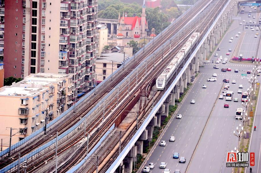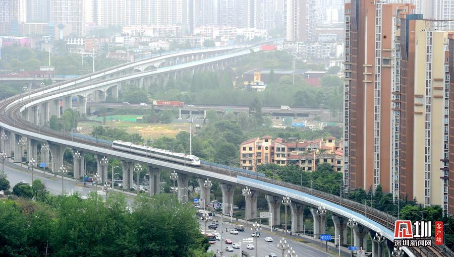 2020年5月11日,四川省成都市,犀浦站是全國首個(gè)鐵路與地鐵換乘車站。圖為動(dòng)車、地鐵同時(shí)運(yùn)行在線路上。