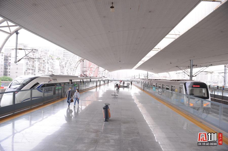 2020年5月11日,四川省成都市,動(dòng)車和地鐵??吭谙只疖囌?。該站在全國首創(chuàng)鐵路與地鐵同臺(tái)換乘記錄,提升了市域鐵路銜接公共交通的效率。