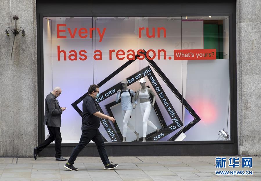 5月12日,人們從英國倫敦攝政街關閉的店鋪前經(jīng)過。新華社記者韓巖攝
