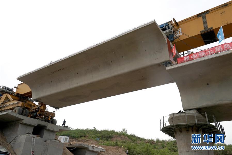 5月13日,中鐵七局的工作人員在位于河南焦作的施工現(xiàn)場指揮架梁作業(yè)。 當(dāng)日,隨著最后一榀長24米、重552噸的箱梁架設(shè)就位,太焦高鐵全線橋梁架設(shè)完成。從山西太原到河南焦作的太焦高鐵是國家規(guī)劃建設(shè)的“八縱八橫”高速鐵路網(wǎng)的重要組成部分,計劃2020年底建成通車。 新華社記者李安攝