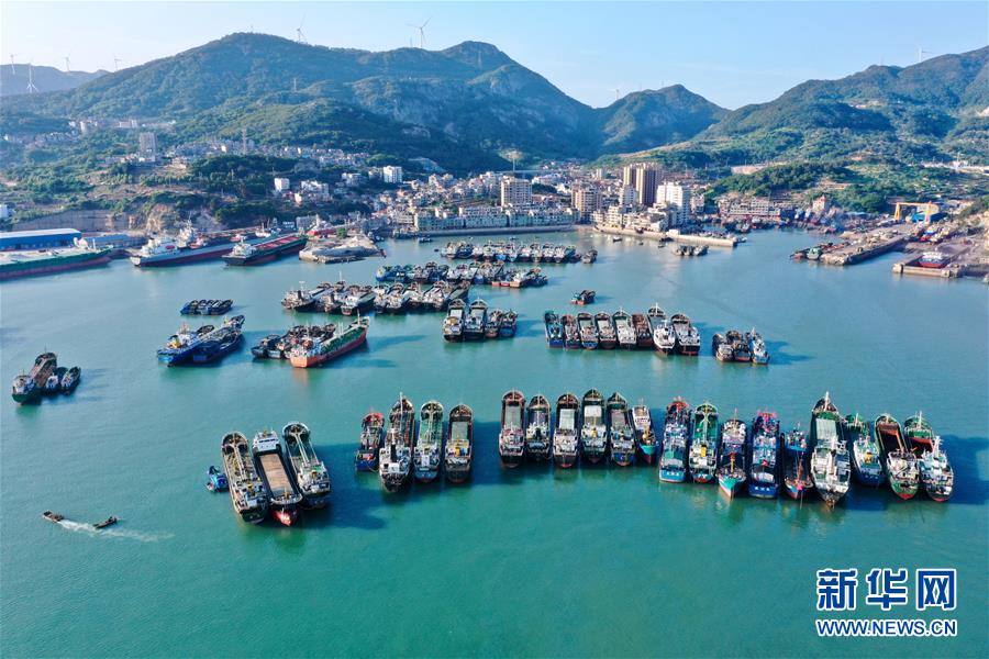 5月13日,休漁漁船停泊在福建省連江縣黃岐鎮(zhèn)海域(無人機照片)。新華社記者姜克紅攝