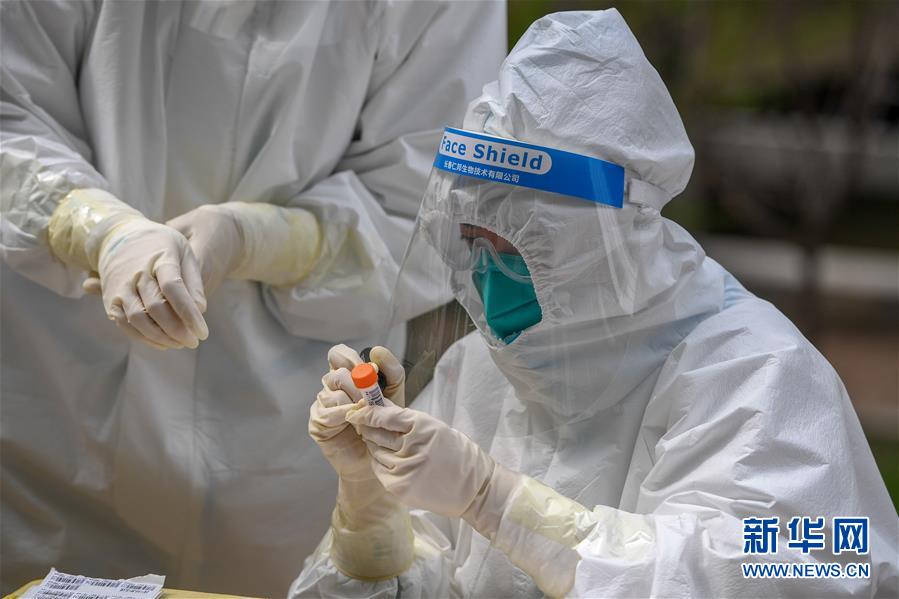 5月15日,在舒蘭市建馨園小區(qū),工作人員為居民進(jìn)行采樣、登記。當(dāng)日,從吉林市7家市直醫(yī)院抽調(diào)的300名護(hù)士經(jīng)培訓(xùn)后,全部投入到舒蘭市(隸屬于吉林市)核酸采樣工作中。為提供追溯傳染源所必需的核酸檢測(cè)相關(guān)數(shù)據(jù),舒蘭市根據(jù)確診病例的活動(dòng)軌跡,將流調(diào)和核酸檢測(cè)范圍擴(kuò)大至本地確診病例和無癥狀感染者的次密接人員及一般接觸者。新華社記者張楠攝