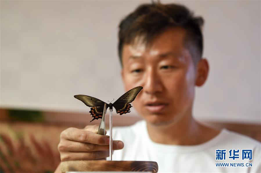 在吉木薩爾縣七彩蝶園,關(guān)富云在制作蝴蝶標(biāo)本(5月15日攝)。走進(jìn)關(guān)富云的七彩蝶園,游客不僅可以近距離接觸翩翩起舞的蝴蝶,還可以欣賞蝴蝶破繭成蝶的蛻變過程。今年34歲的關(guān)富云用9年的時(shí)間實(shí)現(xiàn)了自己的“蝴蝶夢(mèng)”,完成美麗的“蝶變”。關(guān)富云家住新疆吉木薩爾縣北地社區(qū)。2011年,他看到一檔農(nóng)業(yè)致富節(jié)目,萌生了養(yǎng)殖蝴蝶的想法。關(guān)富云說,當(dāng)時(shí)蝴蝶養(yǎng)殖還是一種新興產(chǎn)業(yè),他抱著試一試的想法,在海南學(xué)習(xí)了3個(gè)月蝴蝶養(yǎng)殖,帶回100多個(gè)蝶蛹在家試驗(yàn)養(yǎng)殖。蝴蝶的生存周期短,在當(dāng)?shù)仞B(yǎng)殖需要克服溫度、濕度、病蟲害等問題。關(guān)富云不斷嘗試,越挫越勇,羽化成功的蝴蝶在2014年終于突破了萬只。蝴蝶的色彩艷麗,活體蝴蝶可用于婚慶、開業(yè)慶典等活動(dòng)中放飛,可以取得很好的收益。但它的生命短暫,如何才能最大化蝴蝶的效益,留住它的美呢?關(guān)富云動(dòng)起了心思,開始嘗試制作標(biāo)本和蝶翅畫?!昂宛B(yǎng)殖不同,做蝶翅畫是個(gè)創(chuàng)作的過程,從選擇標(biāo)本到粘貼,每一步都要突出美感?!标P(guān)富云介紹,一幅色彩明艷、栩栩如生的蝶翅畫耗時(shí)多日才能完成。如今,關(guān)富云的活體蝴蝶和蝶翅畫通過線上線下銷售,產(chǎn)品還銷往北京、廈門等地。關(guān)富云的蝴蝶產(chǎn)品得到市場(chǎng)的認(rèn)可,政府也對(duì)他給予大力支持。2019年,吉木薩爾縣在泉子街鎮(zhèn)建起蝴蝶觀賞園,吸引了不少游客到此參觀游玩。對(duì)于未來的發(fā)展,關(guān)富云信心滿滿,“我希望把蝴蝶產(chǎn)業(yè)發(fā)展到天山南北,讓人們?cè)诤涞亩疽材苡^賞到蝴蝶,并且讓更多人參與其中,致富脫貧”。新華社記者丁磊攝