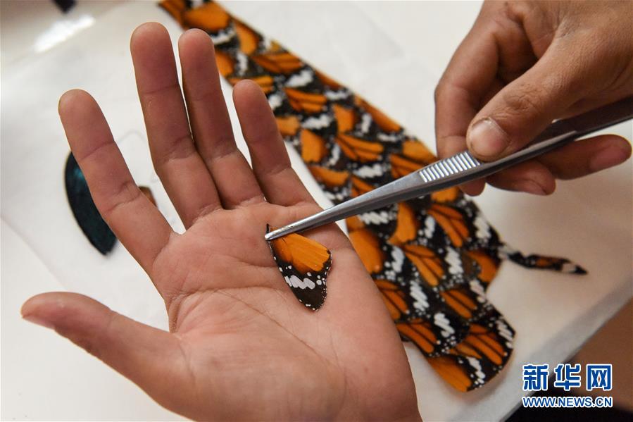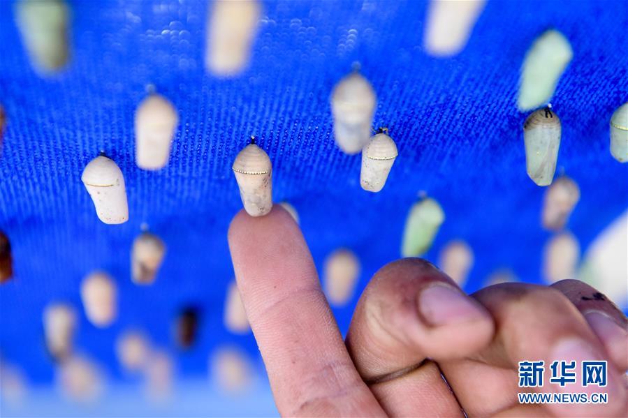 在吉木薩爾縣七彩蝶園,關(guān)富云在制作蝴蝶標(biāo)本(5月15日攝)。走進(jìn)關(guān)富云的七彩蝶園,游客不僅可以近距離接觸翩翩起舞的蝴蝶,還可以欣賞蝴蝶破繭成蝶的蛻變過(guò)程。今年34歲的關(guān)富云用9年的時(shí)間實(shí)現(xiàn)了自己的“蝴蝶夢(mèng)”,完成美麗的“蝶變”。關(guān)富云家住新疆吉木薩爾縣北地社區(qū)。2011年,他看到一檔農(nóng)業(yè)致富節(jié)目,萌生了養(yǎng)殖蝴蝶的想法。關(guān)富云說(shuō),當(dāng)時(shí)蝴蝶養(yǎng)殖還是一種新興產(chǎn)業(yè),他抱著試一試的想法,在海南學(xué)習(xí)了3個(gè)月蝴蝶養(yǎng)殖,帶回100多個(gè)蝶蛹在家試驗(yàn)養(yǎng)殖。蝴蝶的生存周期短,在當(dāng)?shù)仞B(yǎng)殖需要克服溫度、濕度、病蟲(chóng)害等問(wèn)題。關(guān)富云不斷嘗試,越挫越勇,羽化成功的蝴蝶在2014年終于突破了萬(wàn)只。蝴蝶的色彩艷麗,活體蝴蝶可用于婚慶、開(kāi)業(yè)慶典等活動(dòng)中放飛,可以取得很好的收益。但它的生命短暫,如何才能最大化蝴蝶的效益,留住它的美呢?關(guān)富云動(dòng)起了心思,開(kāi)始嘗試制作標(biāo)本和蝶翅畫(huà)?!昂宛B(yǎng)殖不同,做蝶翅畫(huà)是個(gè)創(chuàng)作的過(guò)程,從選擇標(biāo)本到粘貼,每一步都要突出美感。”關(guān)富云介紹,一幅色彩明艷、栩栩如生的蝶翅畫(huà)耗時(shí)多日才能完成。如今,關(guān)富云的活體蝴蝶和蝶翅畫(huà)通過(guò)線(xiàn)上線(xiàn)下銷(xiāo)售,產(chǎn)品還銷(xiāo)往北京、廈門(mén)等地。關(guān)富云的蝴蝶產(chǎn)品得到市場(chǎng)的認(rèn)可,政府也對(duì)他給予大力支持。2019年,吉木薩爾縣在泉子街鎮(zhèn)建起蝴蝶觀賞園,吸引了不少游客到此參觀游玩。對(duì)于未來(lái)的發(fā)展,關(guān)富云信心滿(mǎn)滿(mǎn),“我希望把蝴蝶產(chǎn)業(yè)發(fā)展到天山南北,讓人們?cè)诤涞亩疽材苡^賞到蝴蝶,并且讓更多人參與其中,致富脫貧”。新華社記者丁磊攝