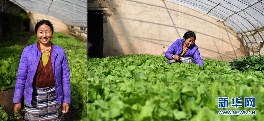 拼版照片:左圖為西藏昌都市左貢縣旺達(dá)鎮(zhèn)列達(dá)村村民阿旺拉珍;右圖為阿旺拉珍在左貢縣旺達(dá)鎮(zhèn)列達(dá)村的蔬菜大棚里忙碌。近年來(lái),列達(dá)村大力發(fā)展蔬菜產(chǎn)業(yè),建起溫室大棚30座,按照每4戶1座大棚的模式進(jìn)行種植、管理和銷(xiāo)售。阿旺拉珍在大棚里種了白菜、辣椒和白蘿卜,一年收入近萬(wàn)元(5月7日攝)。新華社記者詹彥攝