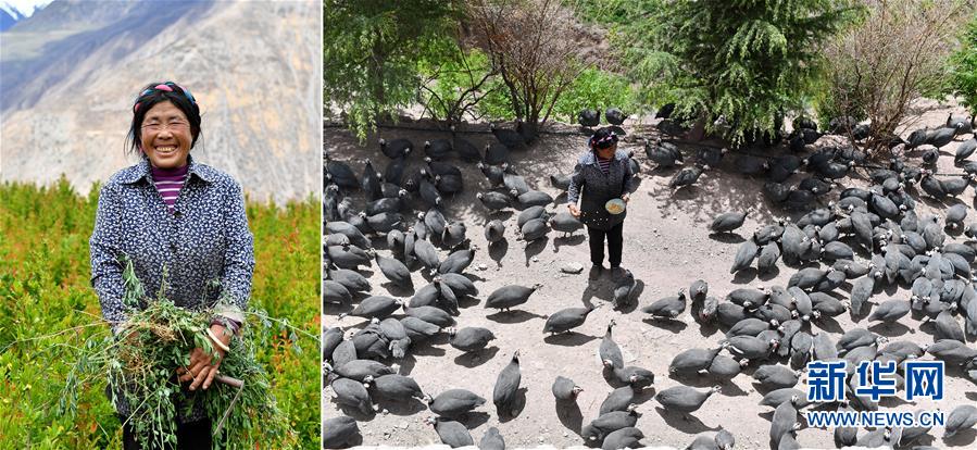 拼版照片:左圖為西藏昌都市芒康縣納西民族鄉(xiāng)加達(dá)村村民白姆;右圖為白姆在芒康縣納西民族鄉(xiāng)三江農(nóng)民專(zhuān)業(yè)合作社喂雞。白姆在三江農(nóng)民專(zhuān)業(yè)合作社打工,主要負(fù)責(zé)喂雞和喂牛,每月有3000元的收入(5月4日攝)。新華社記者詹彥攝