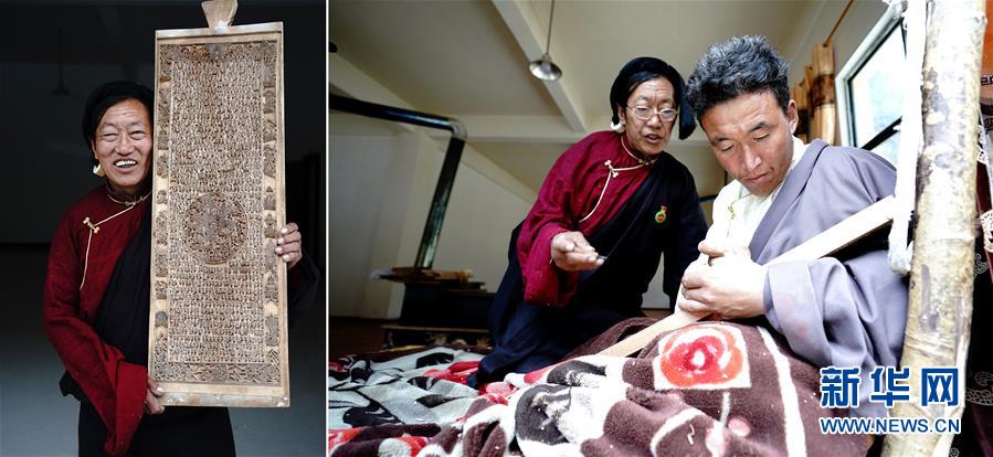 拼版照片:左圖為西藏昌都市江達(dá)縣波羅鄉(xiāng)外沖村村民澤培;右圖為在江達(dá)縣波羅鄉(xiāng)木松民族手工藝有限責(zé)任公司,澤培(左)在指導(dǎo)學(xué)生。澤培是當(dāng)?shù)刂牟_木刻藝人,波羅木刻由于做工繁復(fù),太消耗體能,收入不高,波羅木刻藝人的數(shù)量在過(guò)去幾十年間急劇減少。為保護(hù)和傳承波羅木刻,近年來(lái),江達(dá)縣成立了波羅鄉(xiāng)木松民族手工藝有限責(zé)任公司。澤培招收了幾十名學(xué)徒傳授技藝,經(jīng)過(guò)練習(xí),學(xué)徒們已經(jīng)成為熟練的木刻藝人,每人每月有4000多元的收入(5月1日攝)。新華社記者詹彥攝