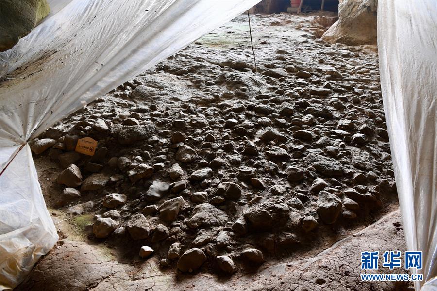 這是萬壽巖遺址船帆洞內(nèi)人工石鋪地面(4月9日攝)。新華社記者姜克紅攝