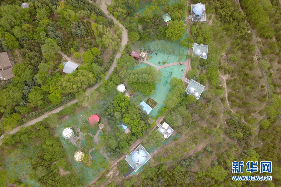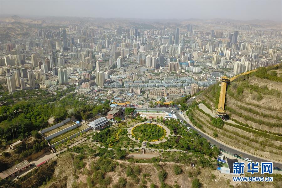這是5月18日在蘭州市城關(guān)區(qū)拍攝的皋蘭山下五泉山公園初夏景象(無人機照片)。