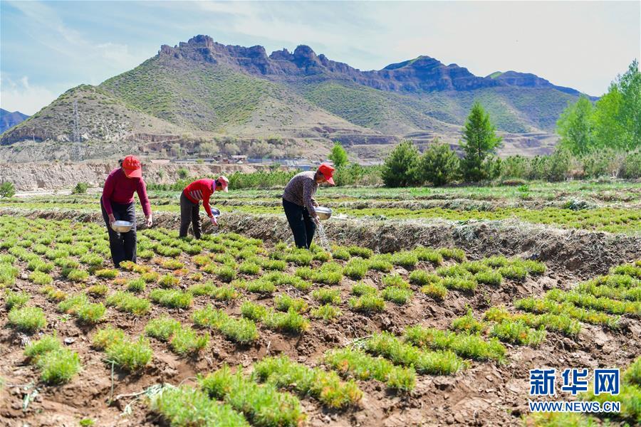 宋家溝村村民在給樹(shù)苗施肥(5月19日攝)。新華社記者曹陽(yáng)攝