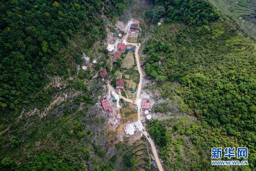 這是大化瑤族自治縣七百弄鄉(xiāng)弄合村弄根屯在進行危房改造和修建進屯路(5月13日攝,無人機照片)。
