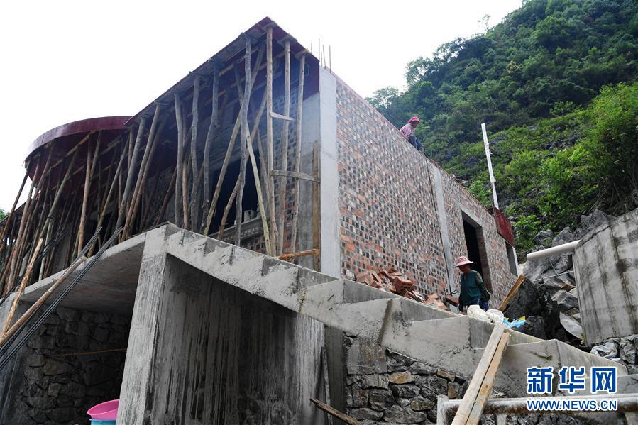 大化瑤族自治縣弄合村弄根屯群眾在建新房(5月13日攝,無人機照片)。新華社記者周華攝