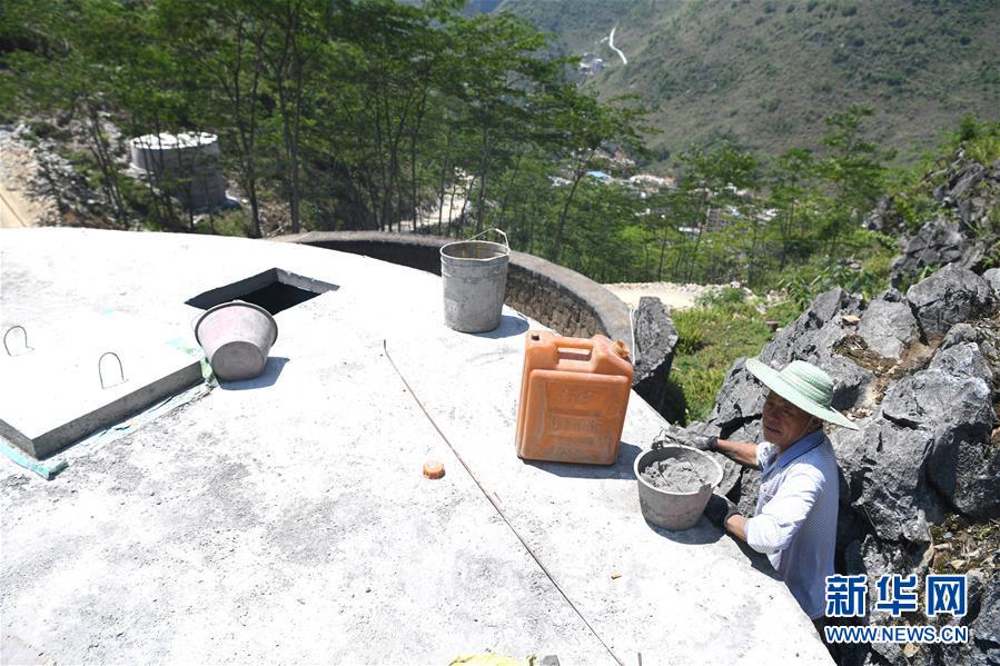 大化瑤族自治縣弄合村弄根屯一位村民在建水柜(5月14日攝,無人機(jī)照片)。新華社記者周華攝