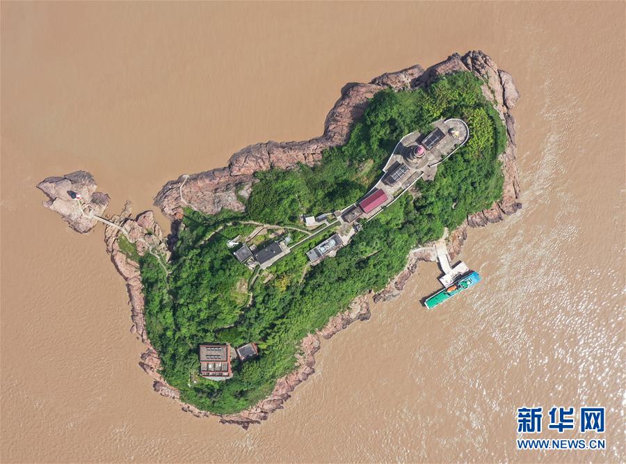 5月20日,補(bǔ)給船在浙江寧波七里嶼碼頭靠岸(無人機(jī)照片)。補(bǔ)給船每周送一次生活物資。新華社記者翁忻旸攝