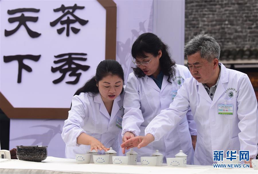 5月22日,專家在斗茶大會上評審參賽茶葉。當(dāng)日,2020永川秀芽第四屆斗茶大會在重慶市永川區(qū)舉行,22家從事茶葉生產(chǎn)加工的企業(yè)參加大會。近年來,永川區(qū)把茶葉產(chǎn)業(yè)確立為農(nóng)業(yè)特色產(chǎn)業(yè)大力扶持,2019年全區(qū)茶葉種植面積近10萬畝。新華社記者 王全超 攝