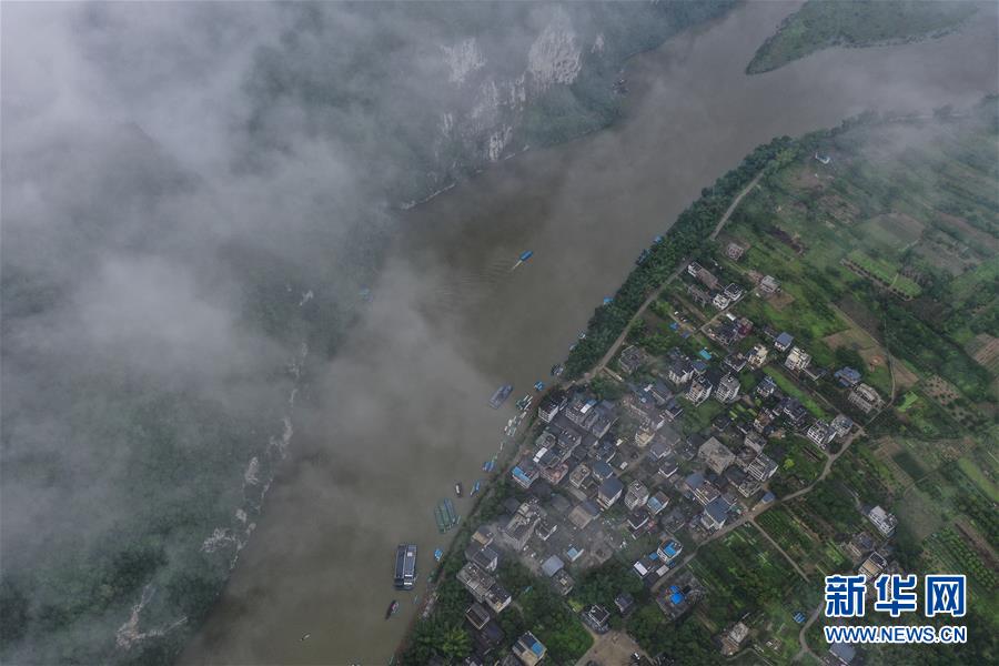 這是在廣西桂林市陽朔縣興坪鎮(zhèn)拍攝的風光(5月19日攝,無人機照片)?!吧n蒼森八桂,茲地在湘南。江作青羅帶,山如碧玉篸……”一千多年前,唐朝詩人韓愈寫盡桂林山水之美。初夏時節(jié),在廣西桂林市陽朔縣興坪鎮(zhèn),藍天白云下,煙雨朦朧中,桂林山水盡顯秀美。新華社記者 周華 攝